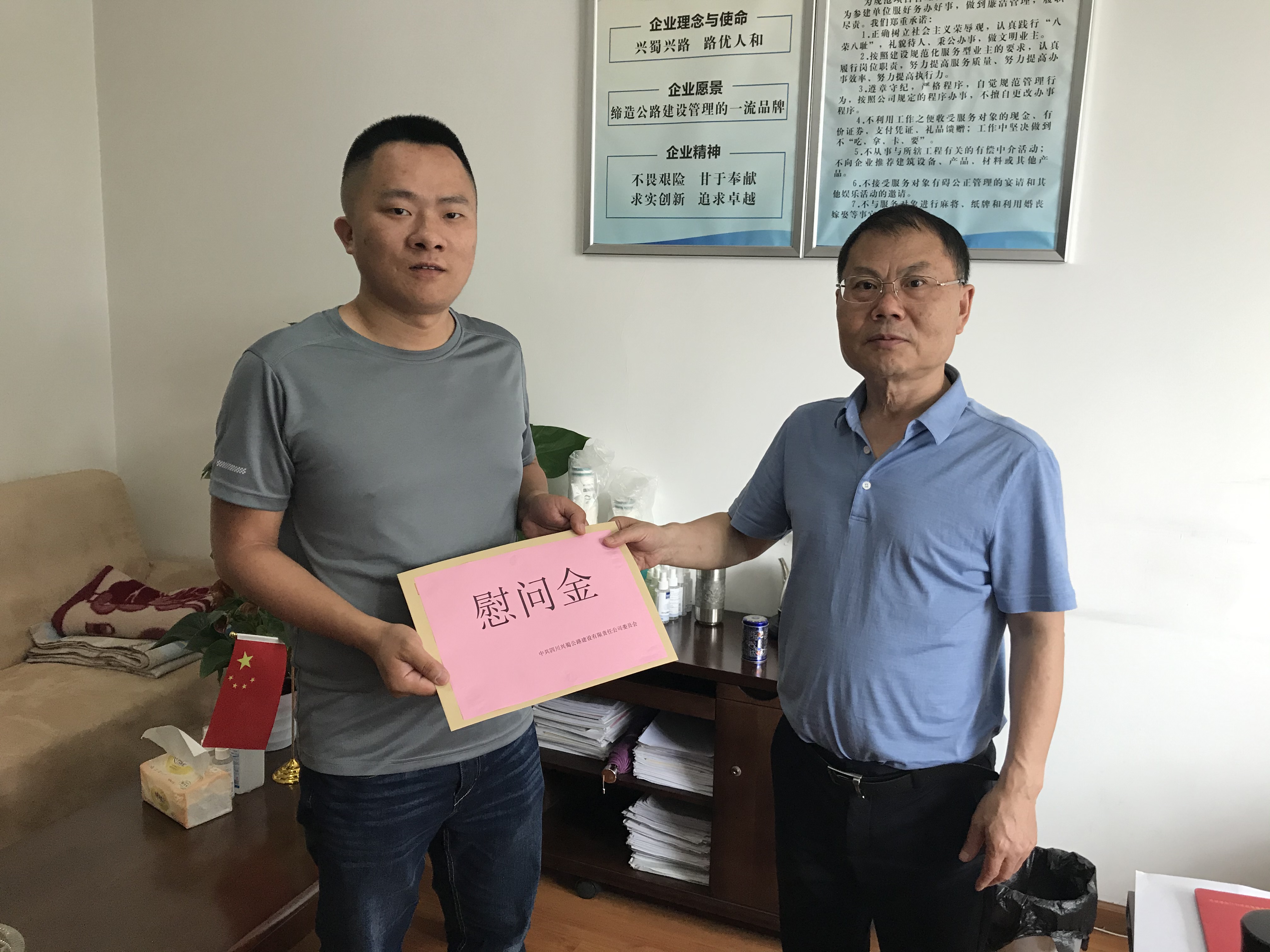 黨委副書記李崇明向困難黨員郎詡橋同志發(fā)放慰問金,并傳達(dá)公司黨委的關(guān)懷,激勵(lì)郎詡橋同志以昂揚(yáng)的姿態(tài)面對(duì)生活。郎詡橋同志表示,感謝公司黨委的關(guān)心,感謝領(lǐng)導(dǎo)的牽掛,一定積極工作、快樂生活,不辜負(fù)公司黨委的殷切期望。